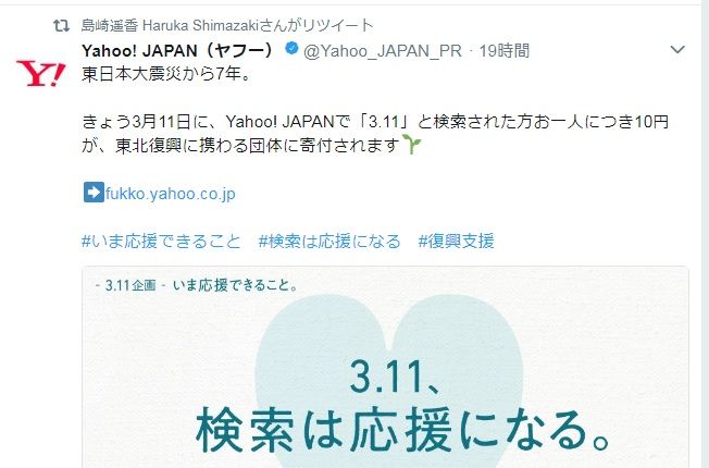 今年もyahooの3.11検索募金できるね